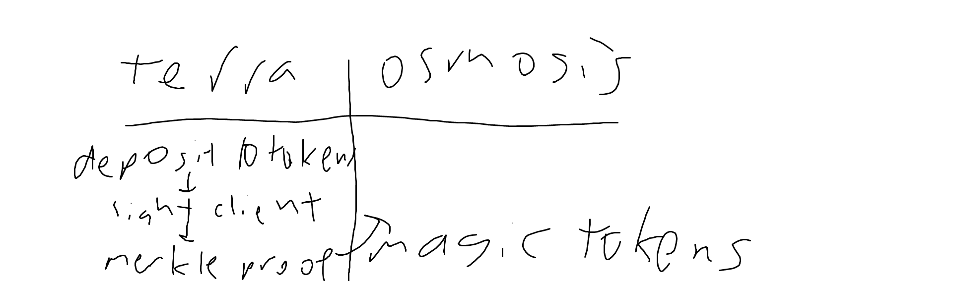 - Relayer: trustless way to send data from one blockchain to another. Think of it as a cable that can transmit data from one chain to another. Security comes from the light client proof, relayers have no verification. End Goal: Each wallet is its own relayer. Relayers also get transaction fees in the future. Currently, relayers are subsidized via the Interchain foundation(Ethereum foundation equivalent)