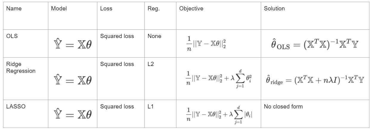 Note that there is NO closed form solution for the optimal parameter vector for LASSO so we must use numerical methods like gradient descent
